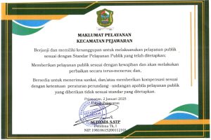 MAKLUMAT PELAYANAN KECAMATAN PEJAWARAN by pejawaran banjarnegara | Nov 17, 2025 | pengumuman | 0 comments MAKLUMAT PELAYANAN KECAMATAN PEJAWARAN Submit a Comment Cancel replyYour email address will not be published. Required fields are marked *Comment * Name * Email * Website Save my name, email, and website in this browser for the next time I comment.